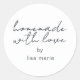 Pegatina personalizada rústica y moderna hecha a mano con amor que presenta una elegante caligrafía manuscrita sobre un fondo blanco. ¡Perfecto para todos tus regalos caseros! Simplemente agrega tu nombre a la etiqueta. ¡Diseñado exclusivamente para ti por Happy Dolphin Studio!