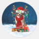 Pegatina Redonda Regalo del Pastor Australiano en Navidades de Niev