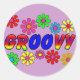 Pegatina Redonda Regalos de energía de flores retro de Groovy 70