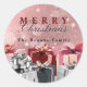 Haz que tus regalos de vacaciones realmente se destaquen con esta elegante etiqueta de Navidad rosa y plateada. Con un impresionante fondo de brillo en un rosa polvoriento o rosa blush de moda, esta clásica etiqueta redonda aporta un toque de glamour moderno a todo tu envoltorio de regalos.