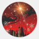 Pegatina Redonda Reindeer de Santa Claus y vuelo de Sleigh