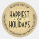 Añada un toque de acabado elegante a las tarjetas de vacaciones, invitaciones o cestas de regalo con estas etiquetas / sellos para sobres de la dirección de retorno brillante de Relieve metalizado en blanco y negro y en oro. El texto de nombre y dirección se puede personalizar fácilmente para uso personal o corporativo. El diseño moderno y sencillo presenta una tipografía de moda inspirada en el Art Deco vintage, con "La más feliz de las vacaciones" en el centro del círculo.