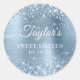 Crea tu propia fiesta de dulces de 16 o 16 años a favor de los pegatinas. Girly imita a un purpurina azul brillante sobre un falso Relieve metalizado de estilo metálico azul claro. Personalizar el color blanco y los estilos de fuente para crear tu propio diseño de pegatina favorita para su celebración especial. Una caligrafía clásica y elegante, acompañada de un tipo de letra serif con todos los mayúsculas.