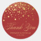 Estos pegatinas de agradecimiento bodas presentan un diseño de puntos de confeti de Relieve metalizado de oro falso y elegante, combinado con un guión elegante para un look moderno y refinado. Disponible en una variedad de colores de fondo, se pueden personalizar con sus nombres y fecha de boda para que se adapten a su evento. Perfecto para sellar bolsos de regalo, cajas de regalo o sobres, este boda le agradece a los pegatinas que le agregan un toque de acabado refinado a su celebración, manteniendo su estilo consistente en todos los detalles.