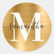 Pegatina Redonda Relieve metalizado dorado de monograma moderno con
