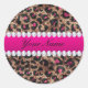 Pegatina Redonda Relieve metalizado dorado de Rosa Rosado Caliente