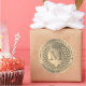 El Relieve metalizado de oro falso se ve sello de graduación con un diseño de una corona de laurel de oro y un borde intrincado. Arte y diseño de Amelia Carrie para invitaciones Purpurinas.