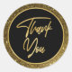 Diga Gracias a cualquiera con este brillante y brillante Relieve metalizado dorado de Faux y Purpurina Moderno y de moda Gracias pegatina con texto de guión dorado sobre fondo negro.