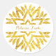 Un pegatina de Bat Mitzvah que combina un aspecto contemporáneo moderno con un símbolo tradicional con un toque. Una mandala gráfica con una Estrella de David se representa en un Relieve metalizado dorado para resaltar el nombre o los nombres de B'not Mitzvah contra un simple fondo blanco. Excelente para usar favores o personalizares como sellos para sobres. Disponible con productos a juego.