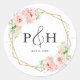 Relieve metalizado dorado Monograma Geométrico Rubor Boda Floral Clásico Pegatina Redondo