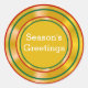 Clásicos de Navidad de Relieve metalizado dorado con el mensaje de saludos de tu temporada enmarcado por anillos verdes y rojos. NOTA: el fondo del Relieve metalizado dorado es sólo un efecto impreso.