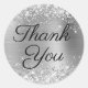 Elegante caligrafía gracias a envolver sellos para su boda moderno. Girly finge purpurina de plata brillante en el borde superior e inferior con brillo extra sobre un falso Relieve metalizado oscuro de estilo metalizado gris y plateado. Personalizar el color negro o el estilo de fuente de este elegante estilo de texto moderno. Los colores principales son plateado, gris plateado y blanco. Todo el glamur de niñas se crea con gráficos de arte digital y es un efecto impreso.