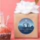 This beautiful blue drawing of the nativity scene is a gorgeous religious Christmas sticker or gift label for a devout family. Unto us a child is born. Send holiday blessings with this Christian gift.