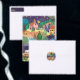 Celebrate the reason for the season with our beautiful nativity scene Christmas sticker. The religious Christmas card features a hand painted nativity scene purple blue pink orange and green. Original artwork by Caroline Bonne Müller
