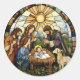Pegatina Redonda Religious Stained Glass Nativity Holiday