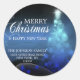 Añada a estos pegatinas a sus tarjetas de felicitación, sobres del REMITE del día de fiesta AZUL moderno y personalizado del navidad blanco y de la Feliz Año Nuevo. Árbol de navidad en luces blancas azules del centelleo. Texto Editable - color, fuente y tamaño.