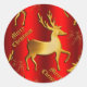 Pegatina Redonda Reno dorado en Navidad roja