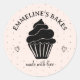 Pegatina Redonda Repostero Casero Bonito Ilustra Cupcake Rosa Negro