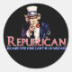 Este humorístico rango político dice 'Republicano, porque todos no pueden estar en Bienestar' con el Tío Sam detrás del texto.
