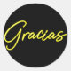 Pegatina Redonda Resplandor Amarillo Neon Español Gracias Gracias