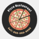 Un pegatina para su negocio de pizzería o camión de comida, comida para llevar a casa, cocinero con un ilustracion de pizza margherita lleno. ¡Los textos son totalmente personalizables! También puedes utilizarlas para un boda, una ducha para bebés, una fiesta de cumpleaños o simplemente para tu pizza casera.