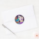 Pegatina Redonda Resumen Chica y pájaro púrpura y Verde azulado