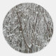 Pegatina Redonda Resumen de invierno de ramas cubiertas de nieve