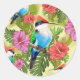 Pegatina Redonda Resurgimiento de colibríes e Hibiscuses