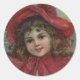 Pegatina Redonda Retrato de Chica de Gorra rojo infantil victoriano
