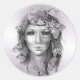 Pegatina Redonda Retrato de mujer con polillas Surreal Oscuro Fanta