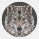 Pegatina Redonda Retrato geométrico de lobo gris