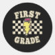Pegatina Redonda Retro 1st First Grade Teacher Lightning Bolt Penci