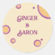Perfecto para las parejas que buscan adoptar un tema retro groovy boda, estos pegatinas son un complemento divertido y vintage de su día especial. Añada un toque de encanto original y retro a sus festividades bodas con estos clásicos pegatinas redondos. Ya sea sellando sobres, decorando favores o añadiendo un toque de color a su decoración, estos pegatinas le darán un toque divertido y elegante a su celebración.