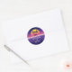 Pegatina Redonda Retro Agradecimiento Puesta de Sol Sintético Purpu