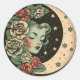 Pegatina Redonda Retro Art Deco Green Crescent Moon Lady
