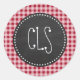 Pegatina Redonda Retro Chalkboard; Carmine Red Gingham; Checkered