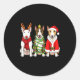 Pegatina Redonda Retro Christmas Bull Terrier Santa Reindeer Dog Lo