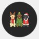Pegatina Redonda Retro Christmas Labrador Retriever Santa Reindeer