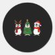 Pegatina Redonda Retro Christmas Penguin Santa Reindeer