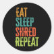 Pegatina Redonda Retro Comer Sleep Shred Repetir Snowboard Surfing
