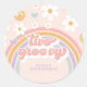 Pegatina Redonda Retro Dos Groovy Chica Arcoiris Segundo cumpleaños