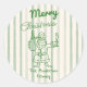 Pegatina Redonda Retro Drawn Green Stripes Santa Claus Christmas