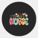 Pegatina Redonda Retro Floral Nurse Graphic Nursing Appreciation