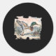 Pegatina Redonda Retro Funny Mallard Duck Waterfowl Hunting Cozy Se