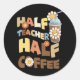 Pegatina Redonda Retro Groovy Half Teacher Half Coffee Happy Teache