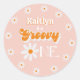 Pegatina Redonda Retro Groovy Un Chica Primer Cumpleaños