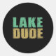 Pegatina Redonda Retro Lake Dude Bote Fun Lake Life