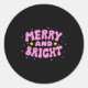 Pegatina Redonda Retro Merry And Bright Holiday Design