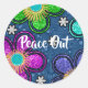Pegatina Redonda Retro Paz Fuera Estilo Hippie Flor Poder