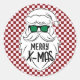 Retro Red Pink Checkered Santa Claus Christmas Classic Round Sticker.